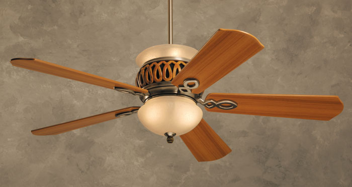 | Model TB307TK Teak Housing with Stainless Steel Trim Teak Blades Bubble Acid Etched Glass |